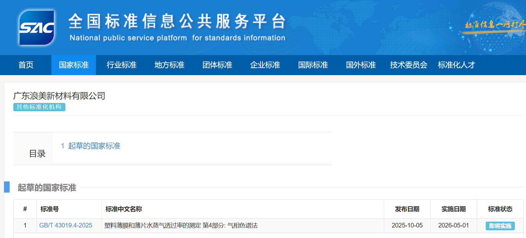 浪美新材料此次成为《塑料薄膜和薄片水蒸气透过率的测定 第4部分: 气相色谱法》国家标准的起草单位,一方面展现了浪美公司在塑料薄膜和薄片领域的实践经验和专业素养,更是国家市场监督管理总局和国家标准化管理委员会对浪美的认可与肯定。