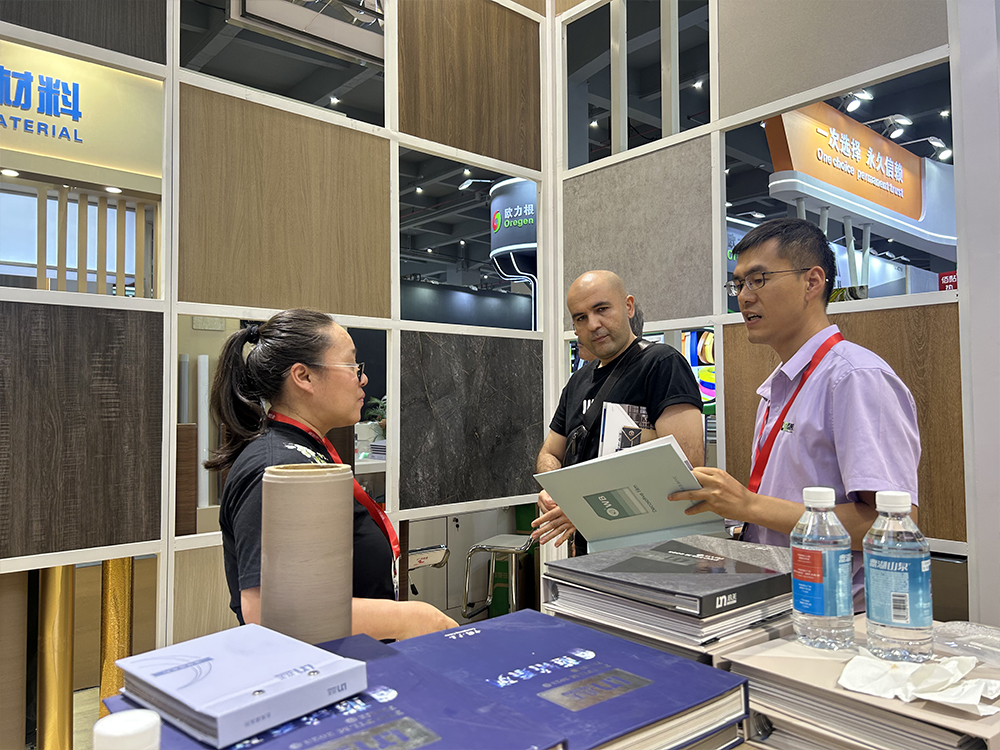 展会期间,浪美装饰膜展台持续迎来国内外商客驻足洽谈。公司安排专业人员与客户面对面交流,为客户详细解读产品性能、技术优势和应用方案。从装饰膜的材质选择到施工工艺、从不同场景的应用案例到未来发展趋势,专业人员与客户进行了深度探讨,让客户对浪美装饰膜有了更全面、更深入的了解。