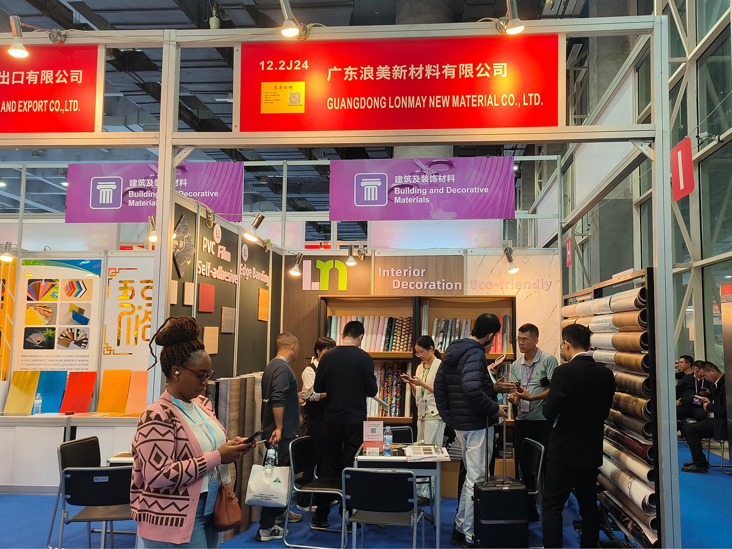 本期广交会聚焦“品质家居”,展览面积达51.5万平方米,超1万家出口企业参展,为全球采购商提供高效集成的家居采购服务。浪美作为清新区参展企业,携众多自主创新的装饰膜新品亮相,向全球商客传递浪美在装饰膜领域的创新实力。